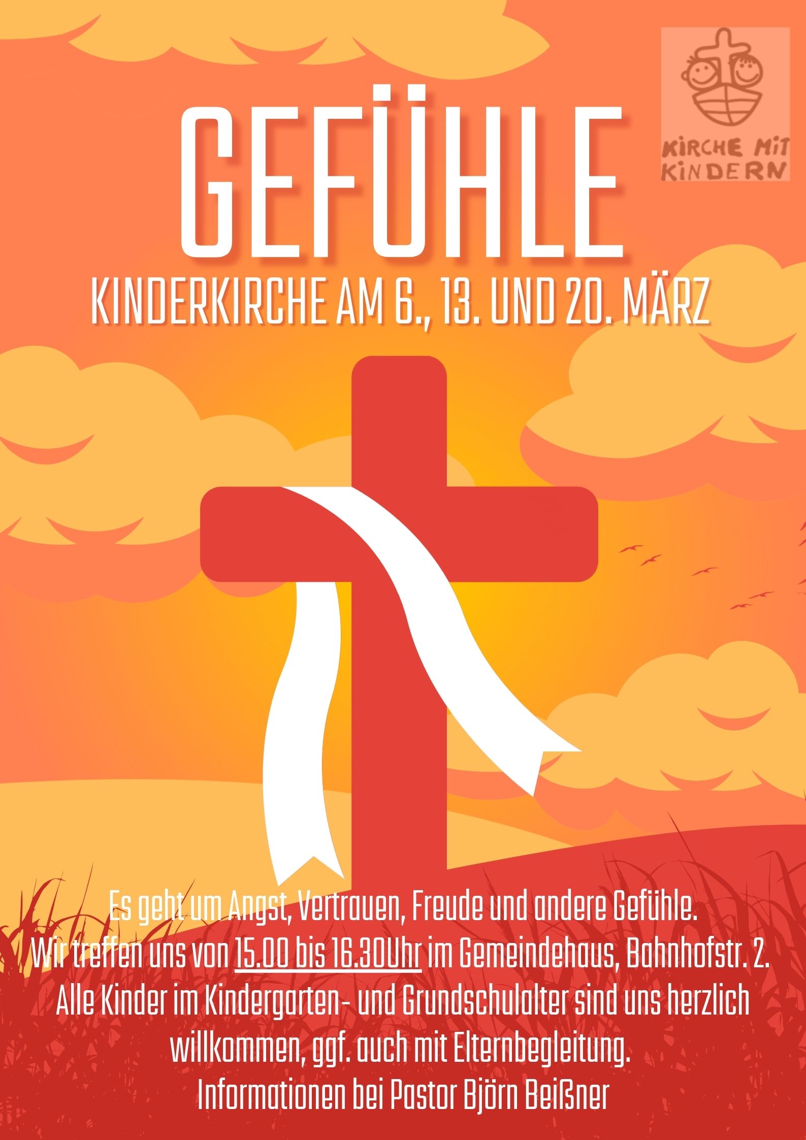 Am 6.3. starten wir wieder mit unserer Kinderkirche. Wir treffen uns freitags von 15.00 bis 16.30Uhr im Gemeindehaus. Diesmal geht es anhand von Bibelgeschichten wie Daniel in der Löwengrube, Jakob und Esau, sowie der Ostererzählung um Gefühle.