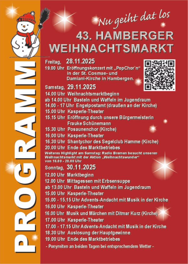 Unser Hamberger Weihnachtsmarkt beginnt am 28. November mit dem Eröffnungskonzert in unserer Kirche.